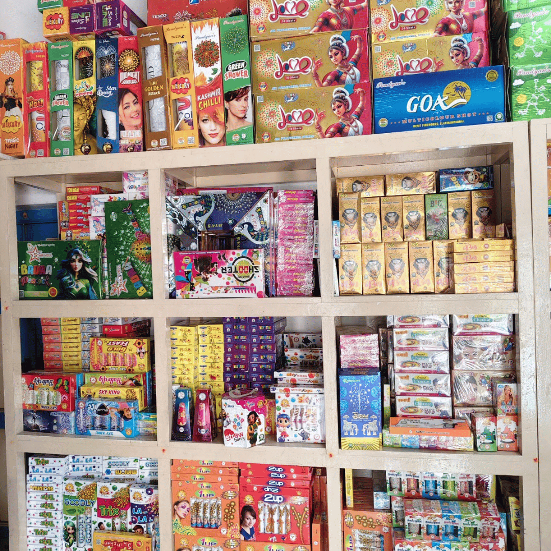 We offer a range of fireworks, including sparklers, ground chakkars, aerial shells, and multi-shot cakes, all meeting strict safety standards.